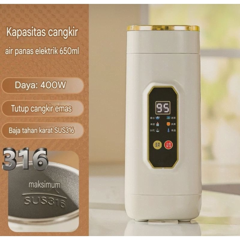 Premium Kettle Listrik Portable 650ml LED SUS 316 / Termos Isolasi Pemanas Air / Masak Air Panas / Smart Electric Kettle