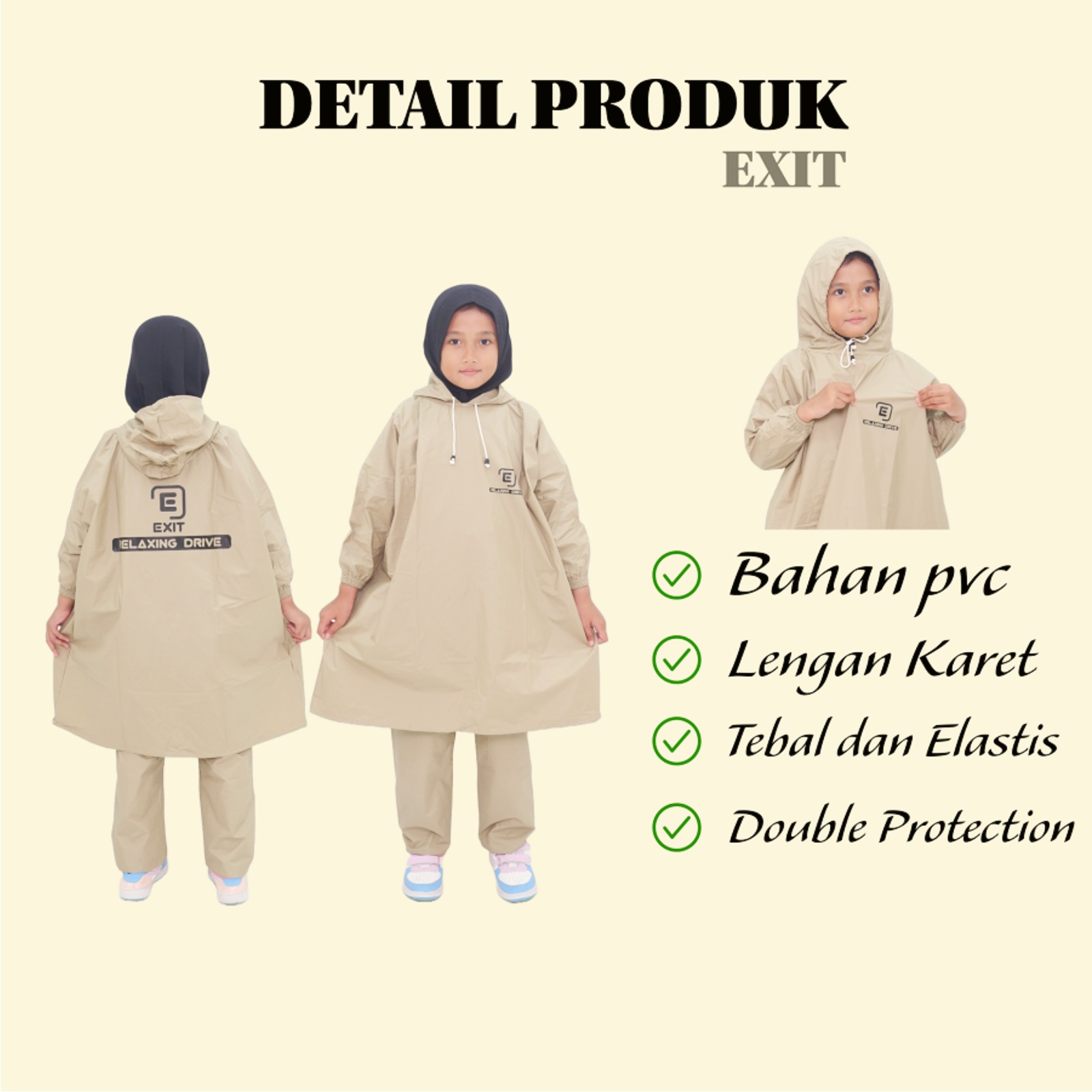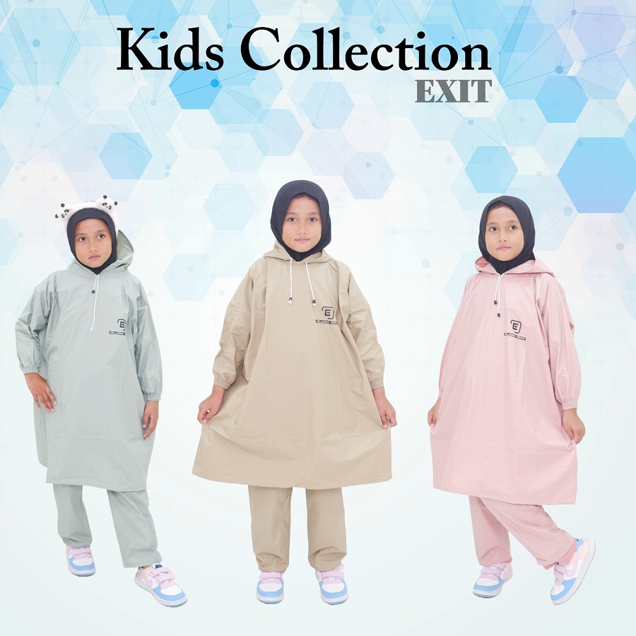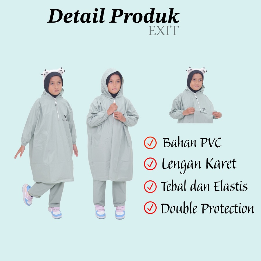 EXIT Jas Hujan Ponco Anak Perempuan Laki Laki Tahan Air Setelan Baju Celana Bahan Kuat Elastis
