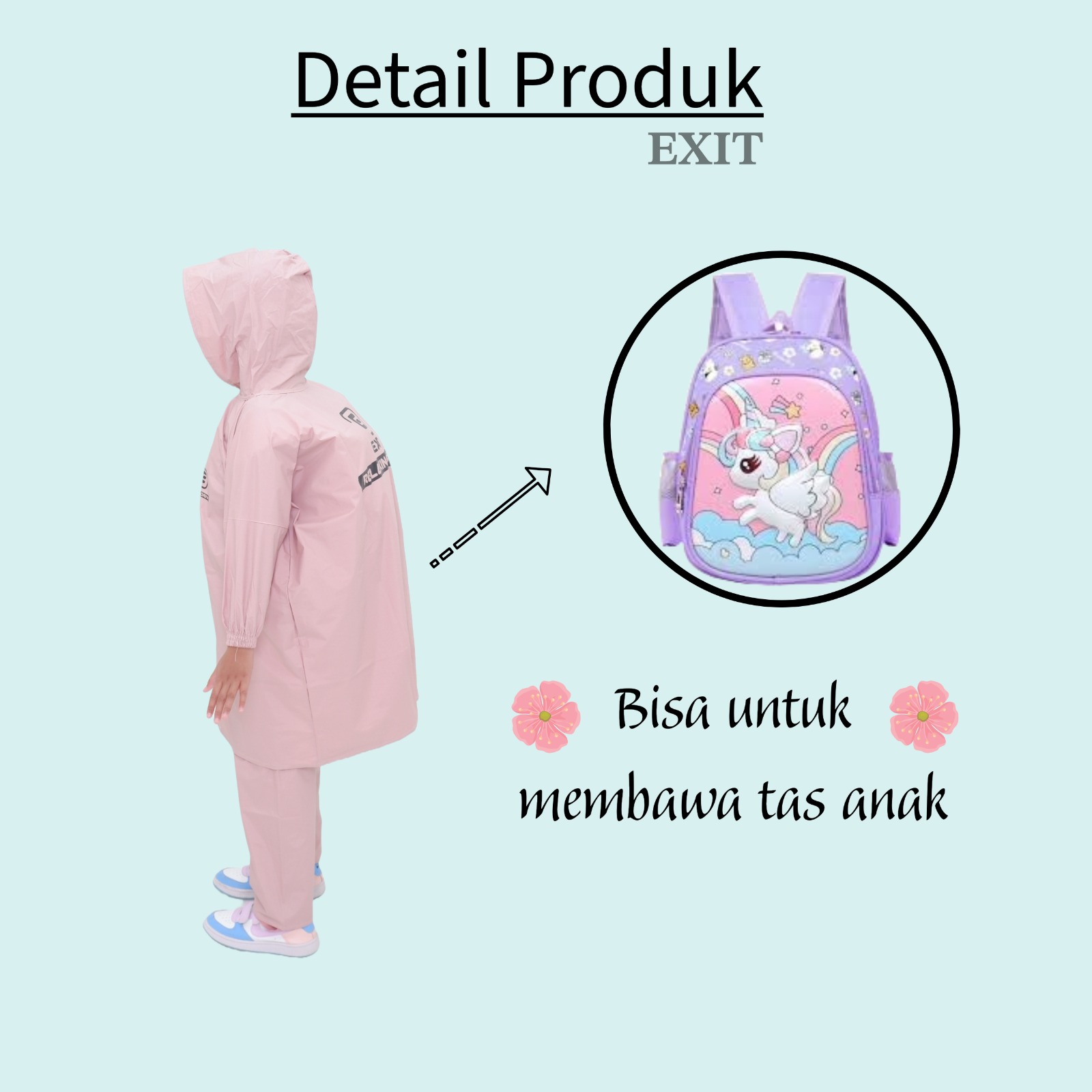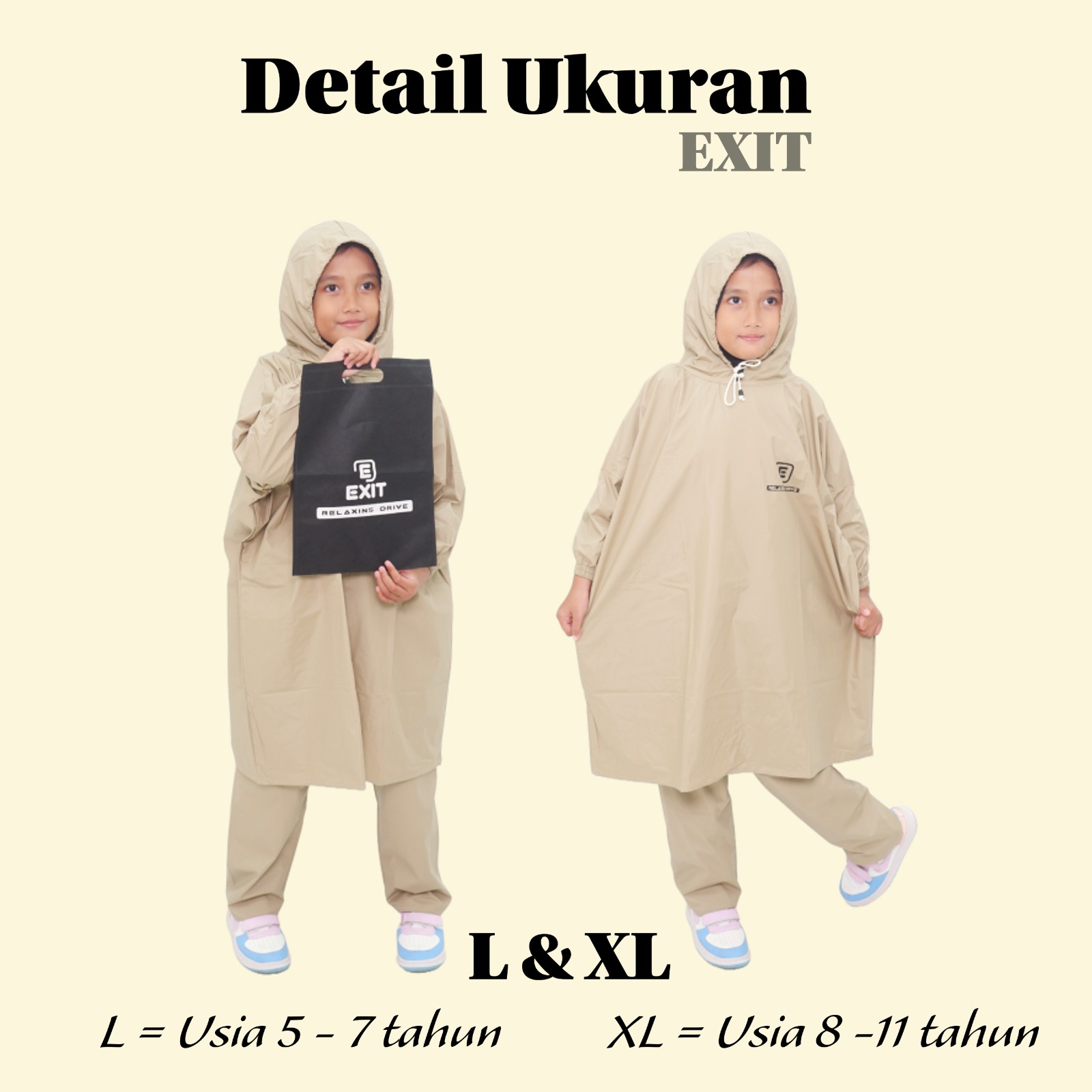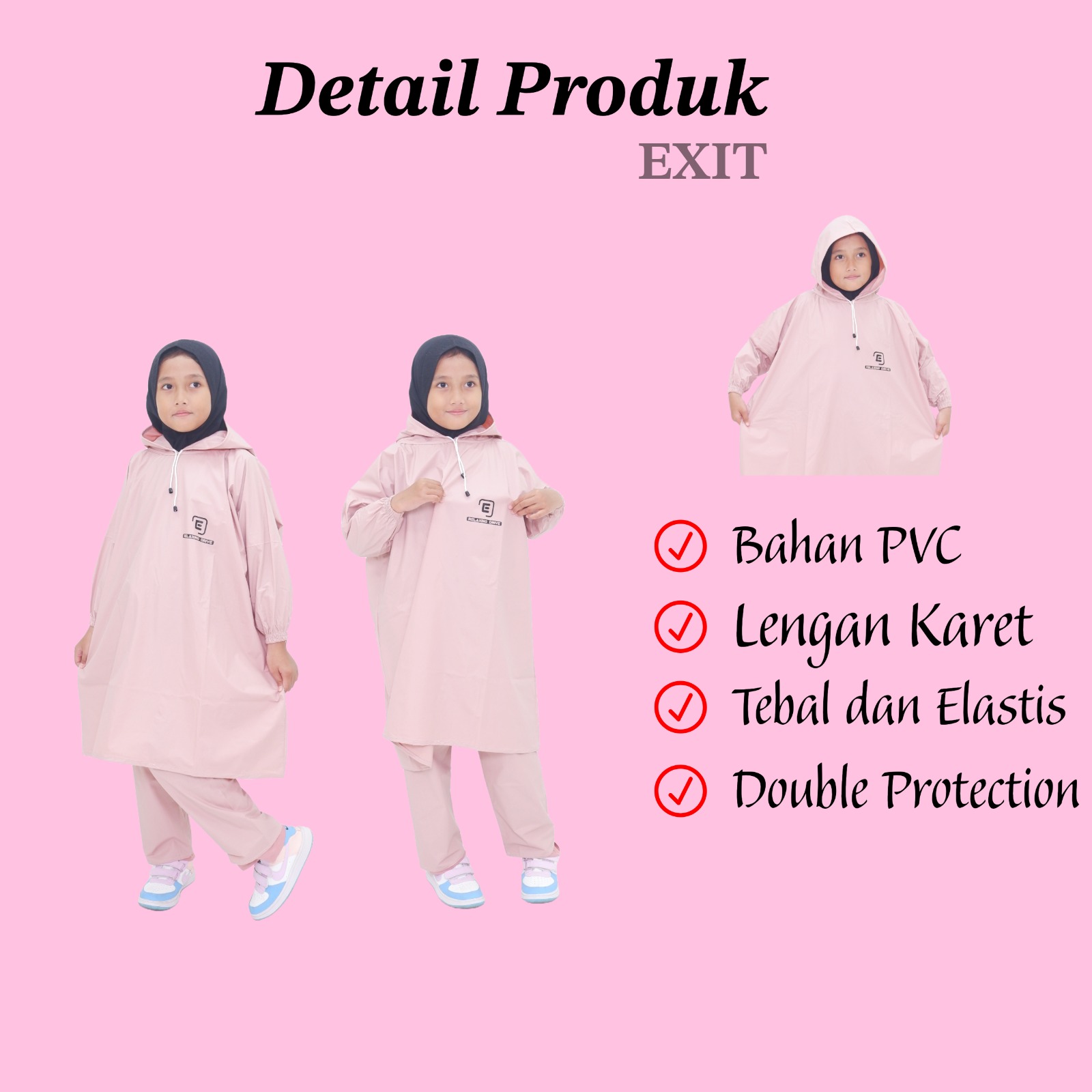 EXIT Jas Hujan Ponco Anak Perempuan Laki Laki Tahan Air Setelan Baju Celana Bahan Kuat Elastis
