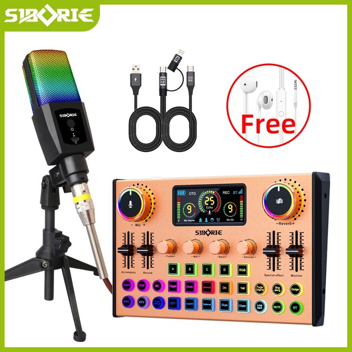 Siborie【\】H600 Sound Card+ML3 RGB Lampu Mic+E10 Headset+OTG-2 IN 1 Paket Komplit Peralatan Teratas