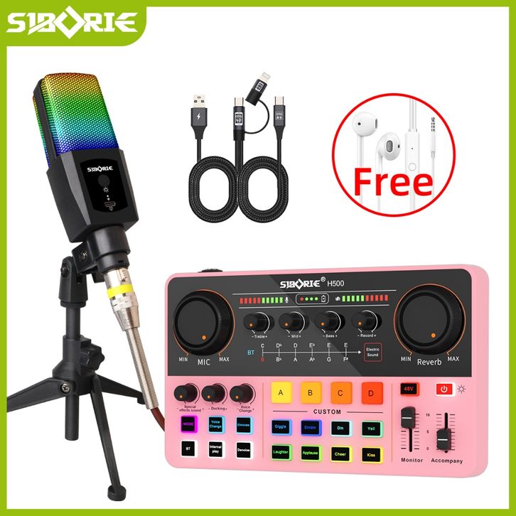 Siborie H500 Soundcard + ML3 RGB Lampu Mic + E10 Headset + OTG-2 IN 1 Paket Lengkap Live Soundcard