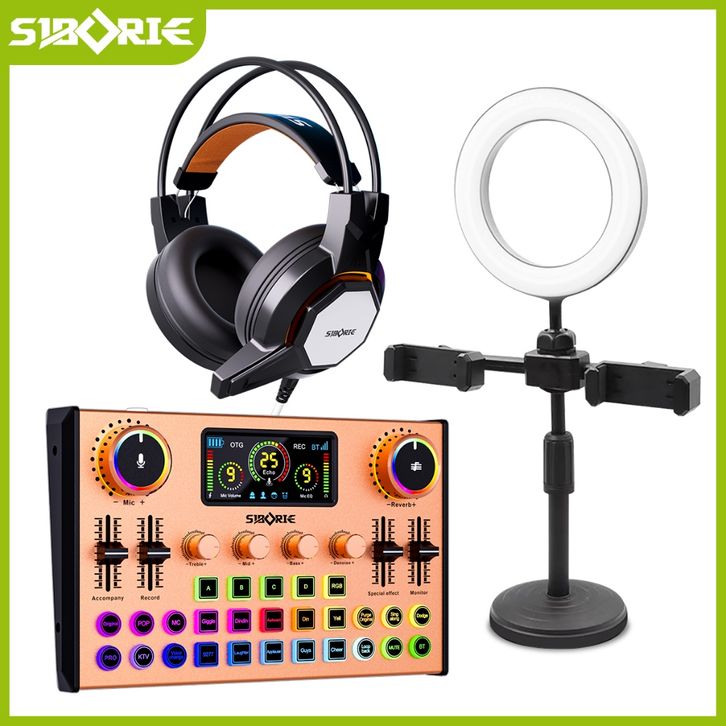 Siborie【\】Soundcard H600+H5 +Lampu Live Streaming Of All Kit Equipment Sound Card For