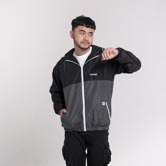 Troveast Jaket Windbreaker Spring Series Black Grey Fit Nyaman