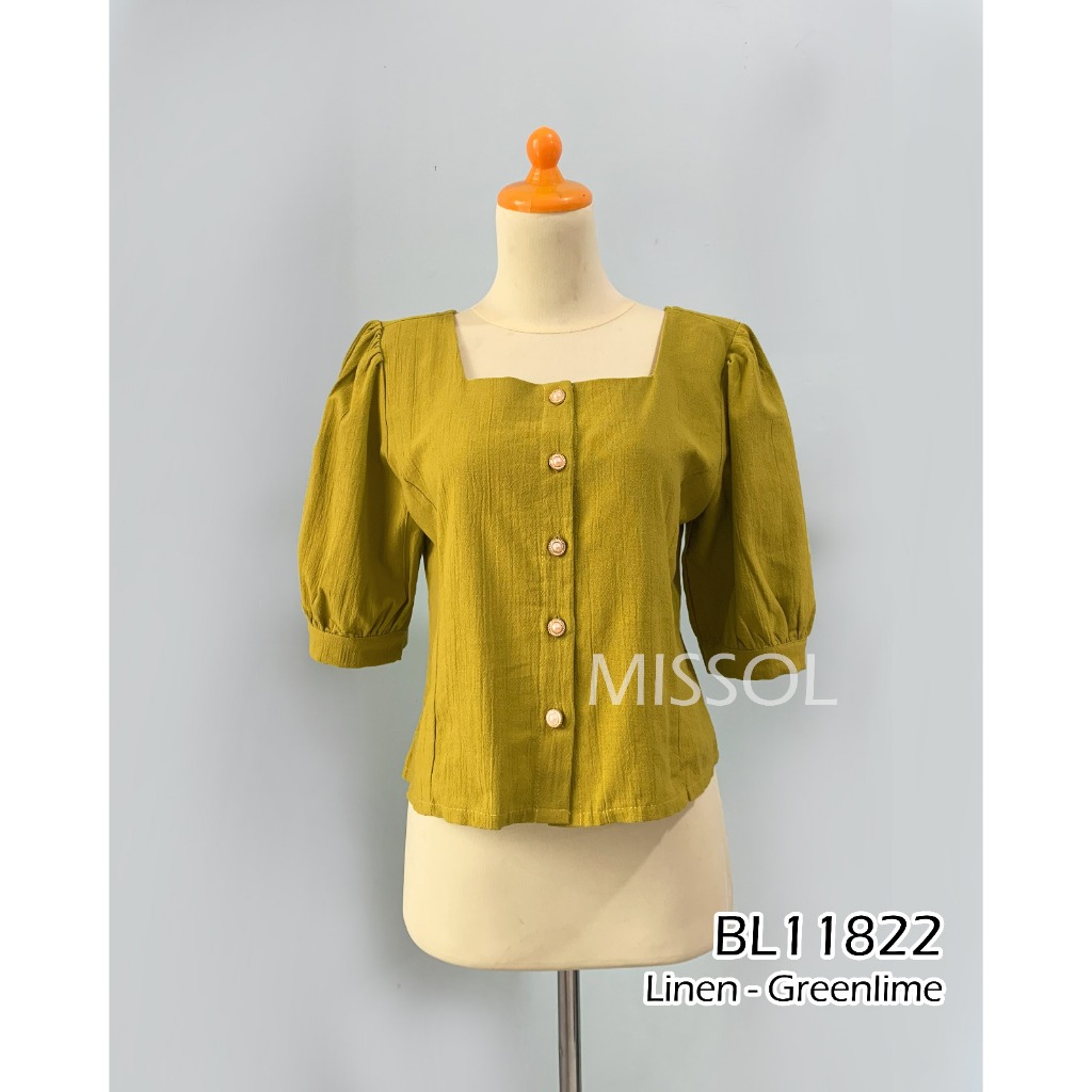 MISSOL Atasan linen wanita polos lengan balon korean style BL11822 11822