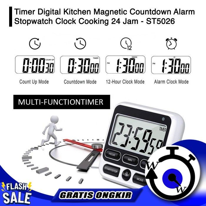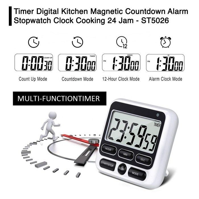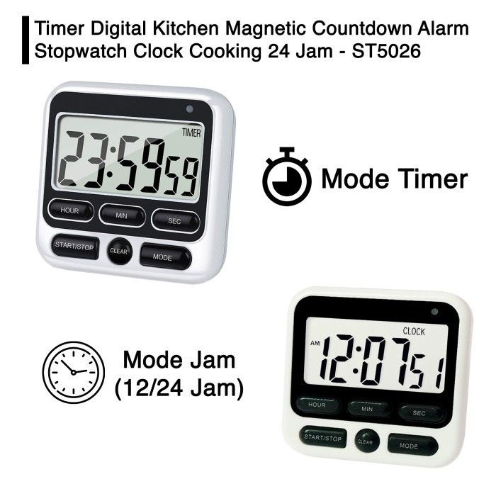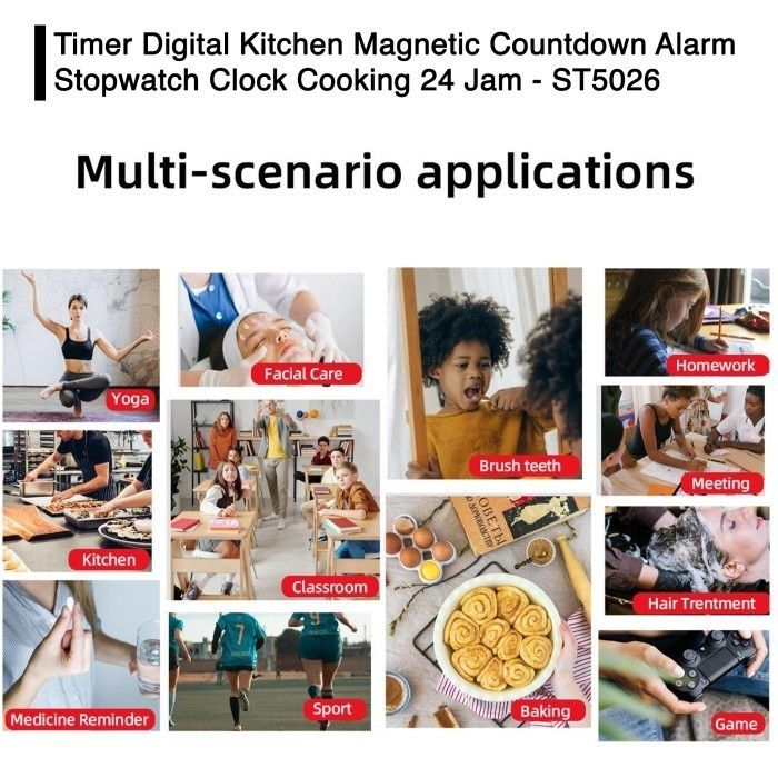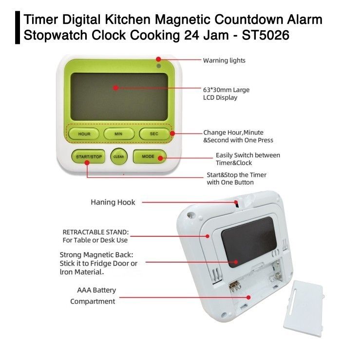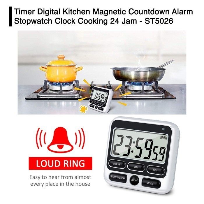 Timer Masak Dapur Digital LCD Kitchen Magnet Magnetic Countdown Jam Alarm Stopwatch Clock Cooking Kopi Roti 24 Jam