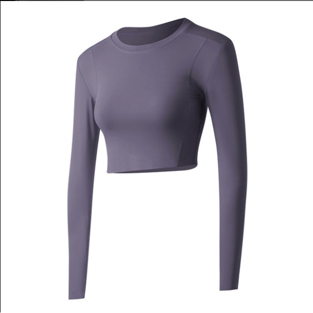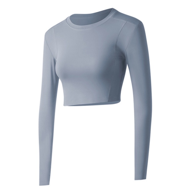 SecondShape - Crop Top T-Shirt Baju Olahraga Wanita Atasan Tangan Panjang Yoga Senam Tennis Padel Fitness Gym Padel