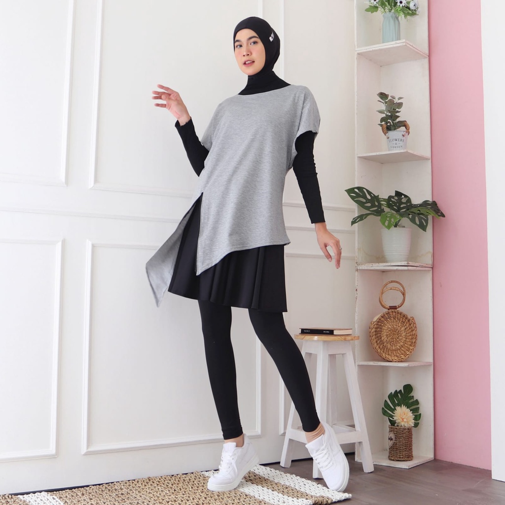 HITJAB - Baju Atasan Olahraga Wanita Sport Tunik Zipper Senam Gym Fitness Padel Training 7276