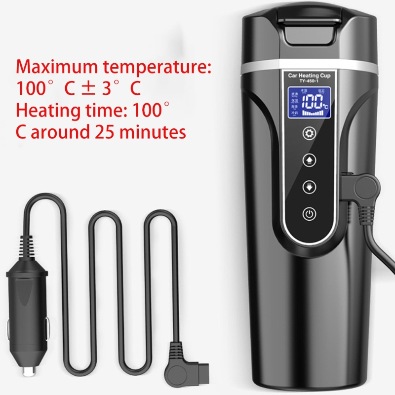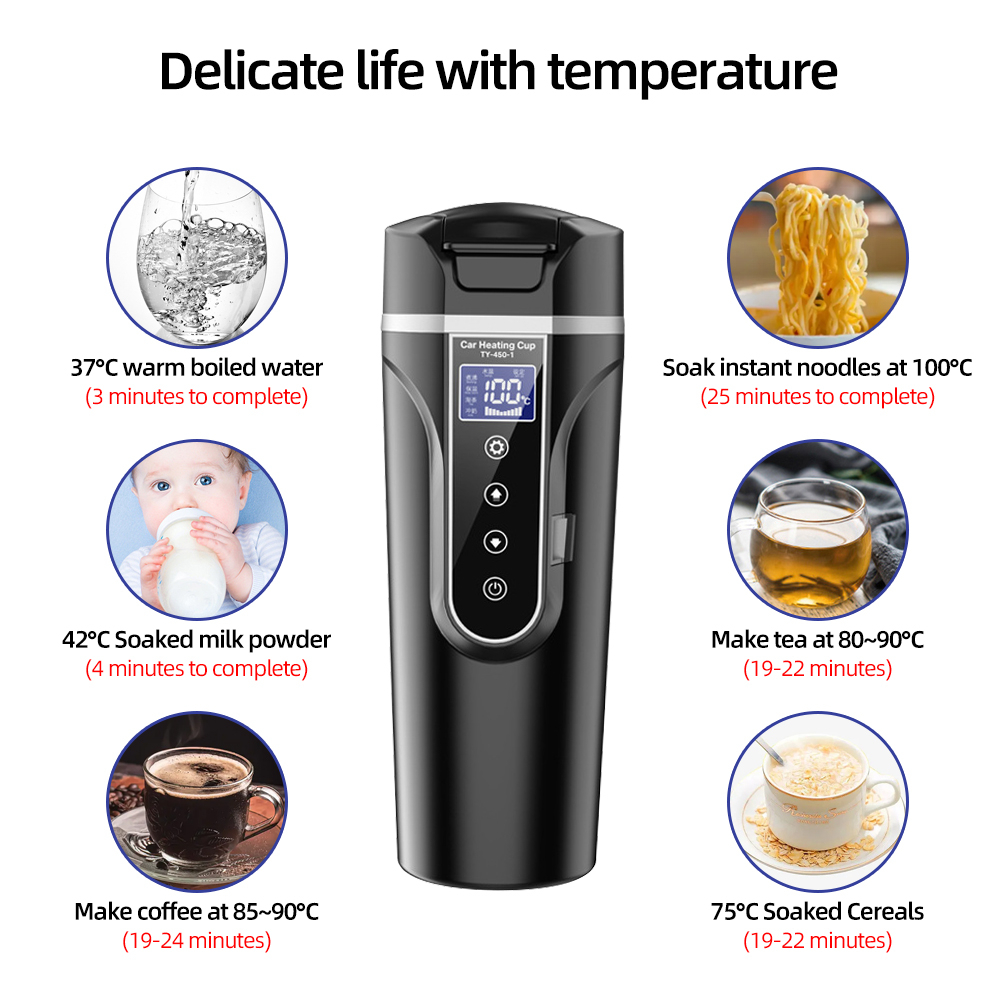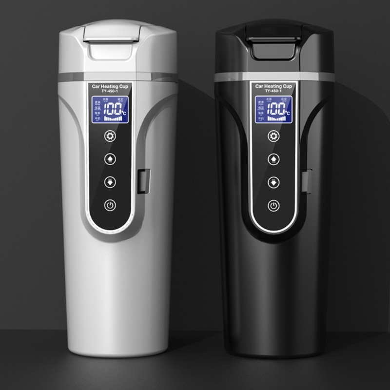 Portable Car Heating Cup Thermos Stainless Steel 500ml -12V 24V Smart LCD Display- TERMOS PEMANAS AIR MOBIL