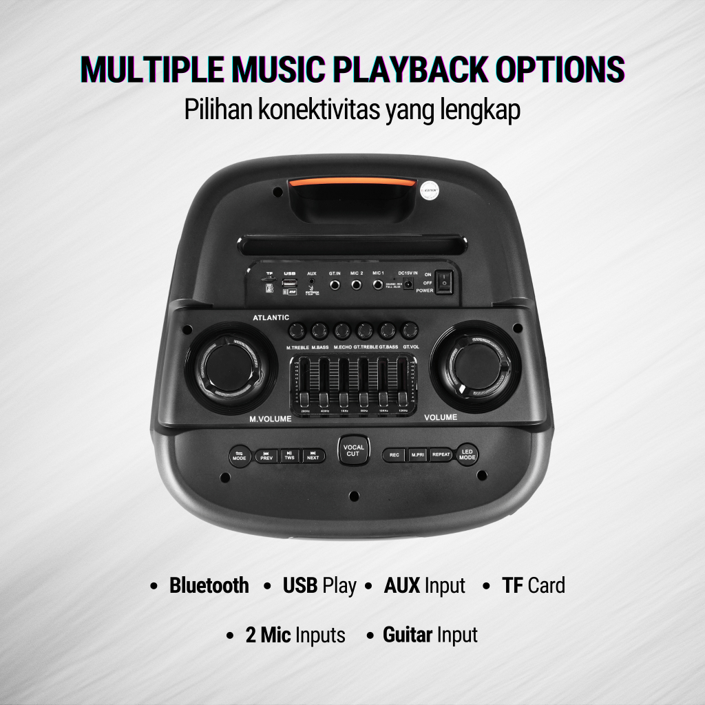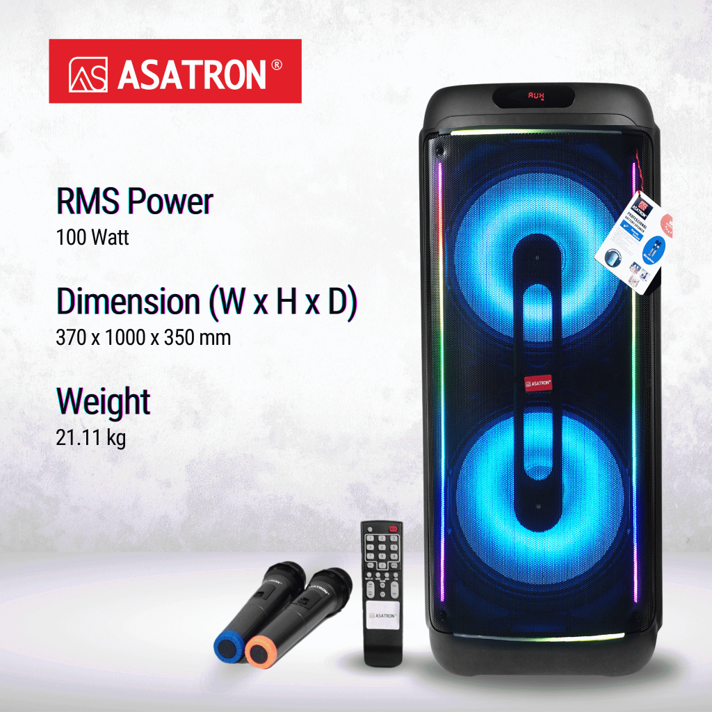 Asatron Atlantic Dual 15 Inch Bluetooth Party Speaker with 2 Wireless Mic