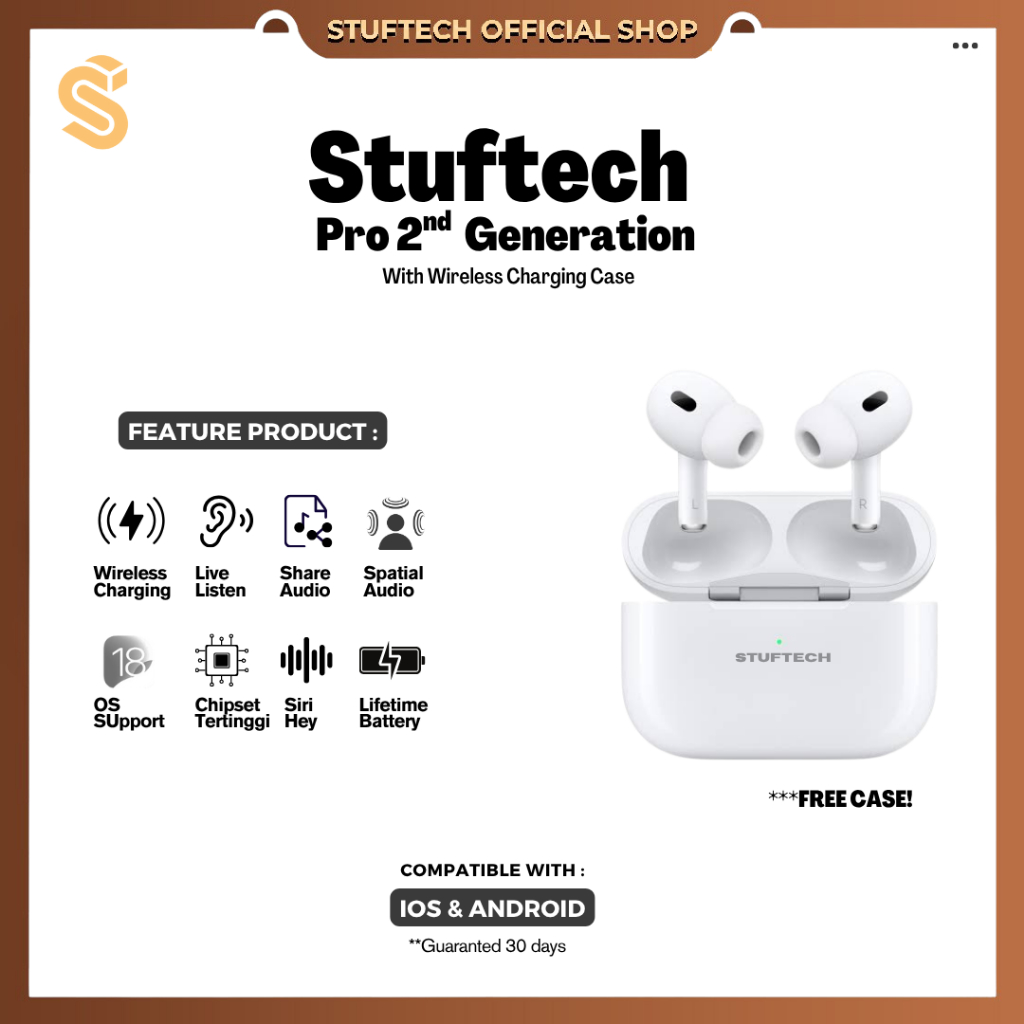 [Mall] STUFTECH PRO 2 – TWS ACTIVE NOISE CANCELATION, H2 CHIP, WIRELESS CHARGING, FREE CASE, IMEI TERDAFTAR