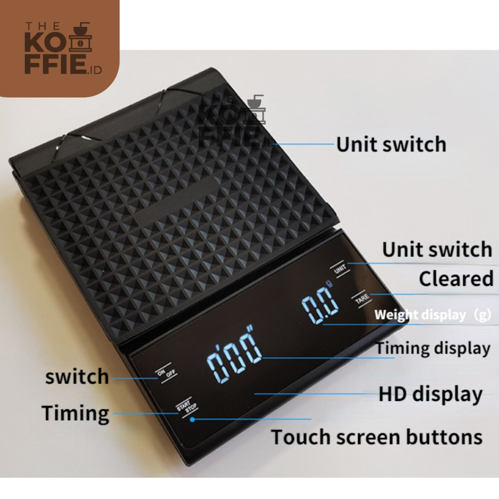 Timbangan Kopi Digital Timer Coffee Scale 3kg 0.1g Battery - Black