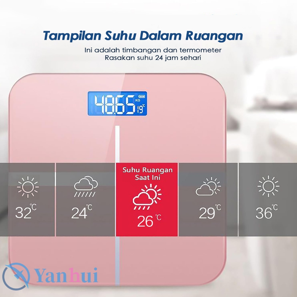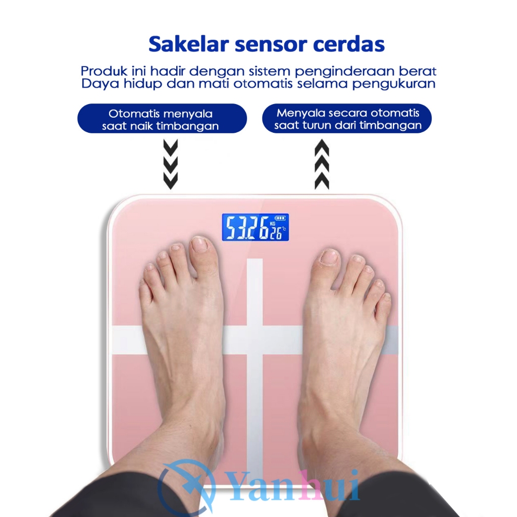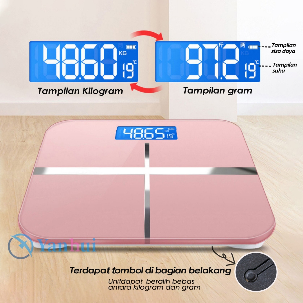 Timbangan Badan Digital USB Charge 180 KG Anti Pecah Layar LCD Pengukuran Akurat Body Weight Scale