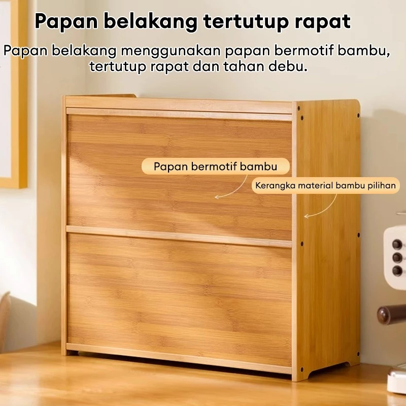SET 3 KABINET DAPUR MINIMALIS KAYU - UKURAN 28/42/50CM, PINTU KACA BURAM & RAK TERBUKA ESTETIK