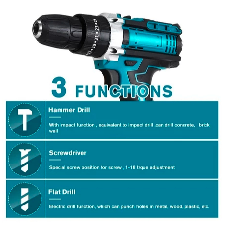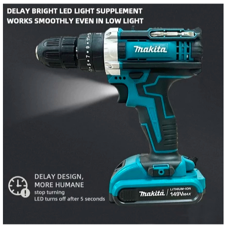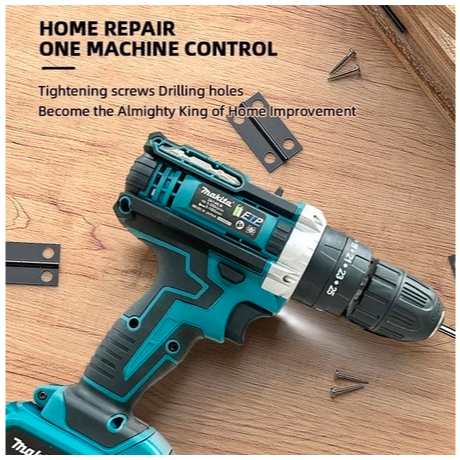 Makita【Dikirim dalam waktu 6 jam】Bor Tanpa Kabel Bor Tangan Ringan Daya Tinggi 2 Baterai Multifungsi