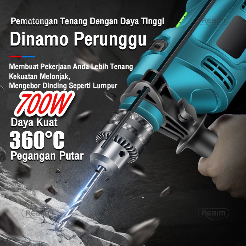 Reaim Mesin Bor Listrik 700w 13mm Daya super Bor listrik besar bor dinding tanpa kabel pengeboran beton murah bor multif