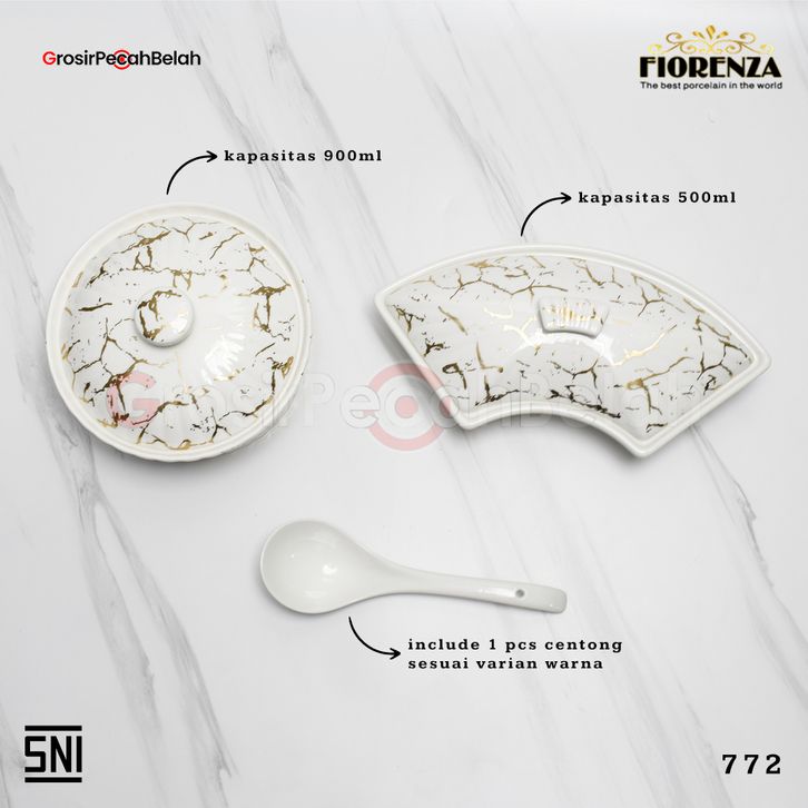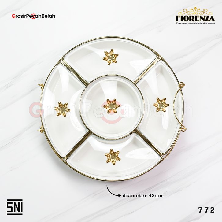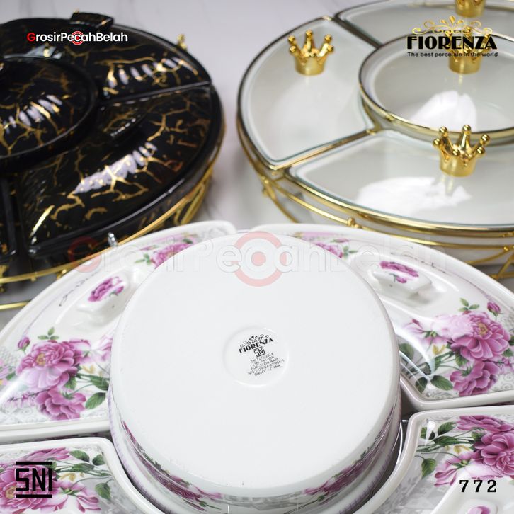 Fiorenza - Prasmanan Putar Keramik Set Wadah Saji Mewah Estetik | Motif Marble Linning Gold Bunga 772