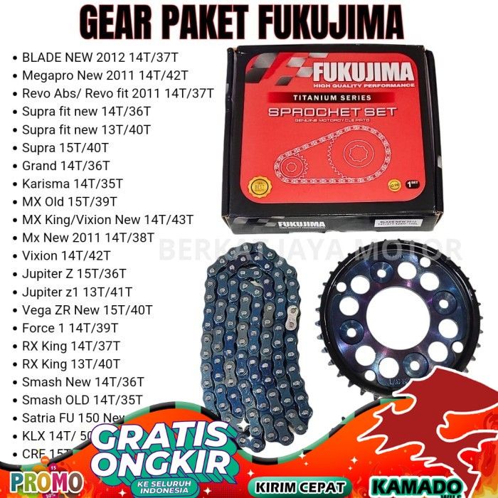 GEAR SET GIR SET CHAIN KIT GEAR PAKET FUKUJIMA SMASH NEW SMASH TITAN SMASH 110 SHOGUN 125 FL/SP ORIGINAL