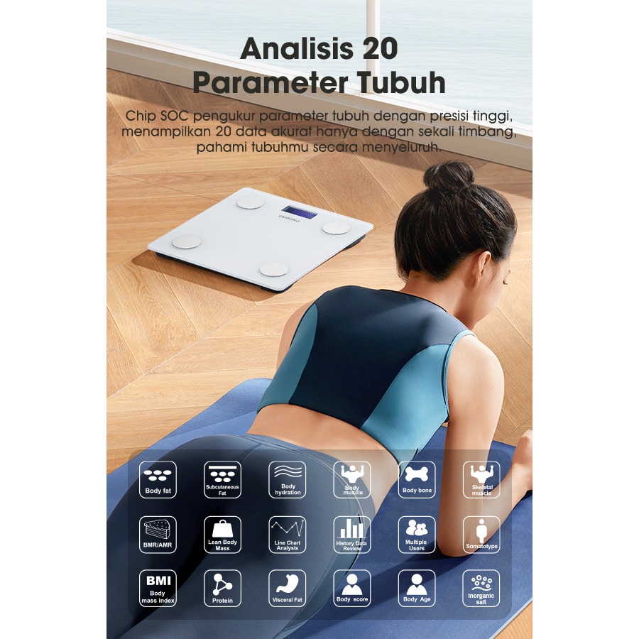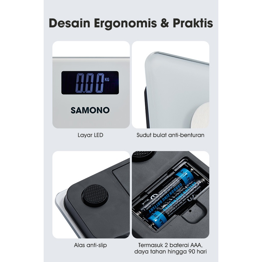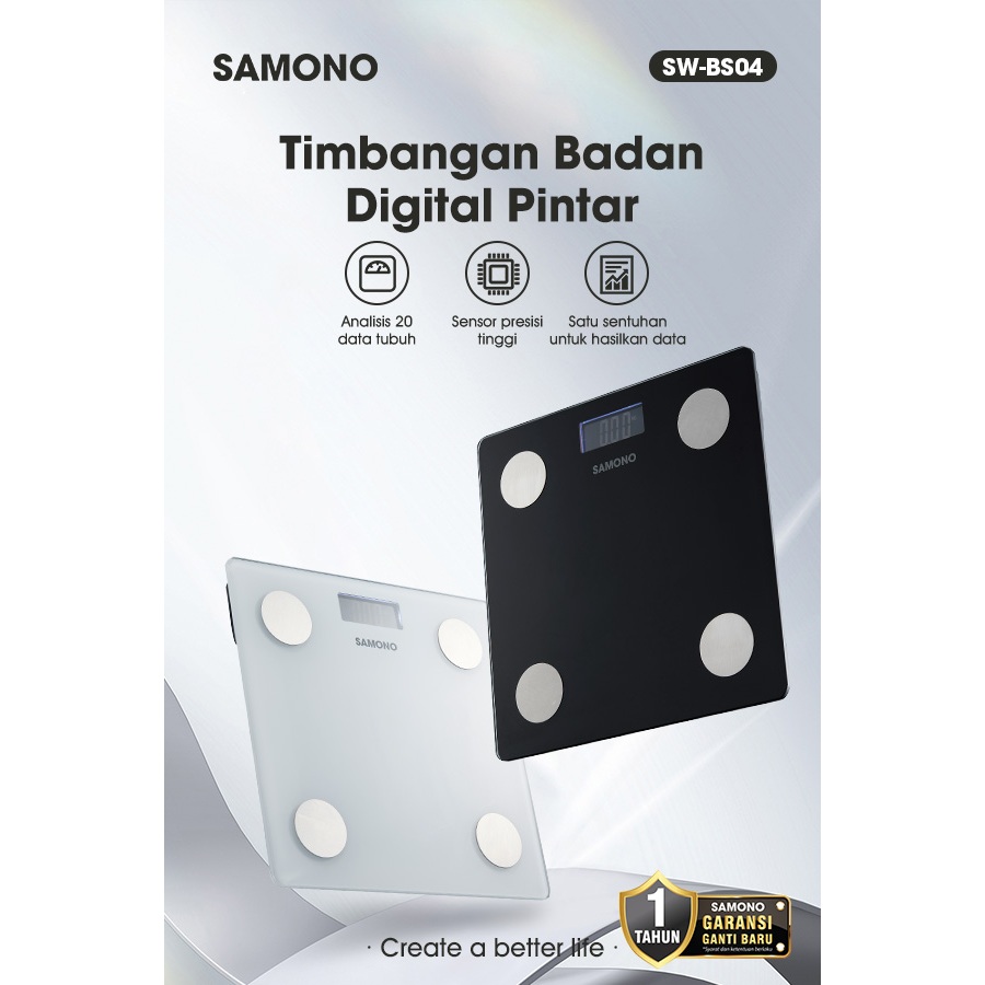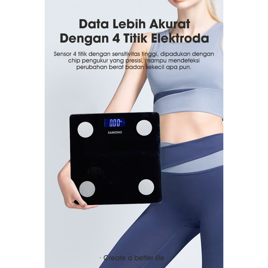 SAMONO Timbangan Badan Digital BMI Lemak Tubuh 180Kg Dengan Aplikasi Bluutooth Analisa Tubuh Body Fat SW-BS04