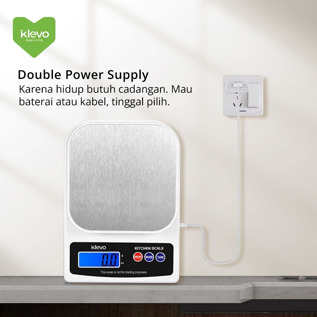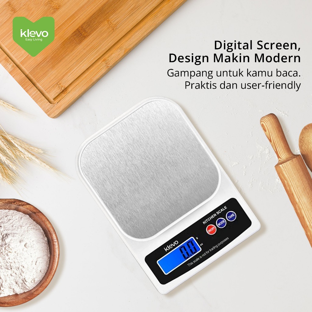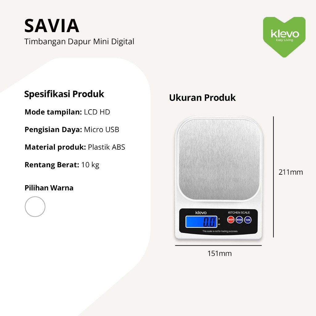 KLEVO SAVIA Timbangan Dapur Mini Digital 10 Kg Kitchen Scale LED Display Rechargeable Presisi Akurat