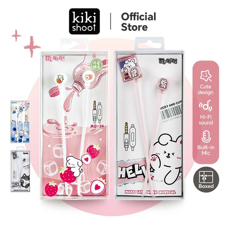 Headset MQ-34/39 3.5mm Jack Cute Animals Fruits Wired Kabel Earphone Hi-Fi HD Mic Handsfree Earphone Hp Computer Gaming