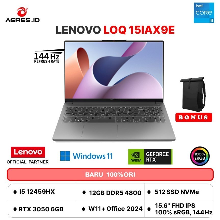 LENOVO LOQ ESSENTIAL 15 I5 12450HX RTX3050 6GB/ 16GB 512GB W11+OHS 15.6FHD 144HZ 100SRGB BLIT 2Y PREM+2ADP GRY -8UID
