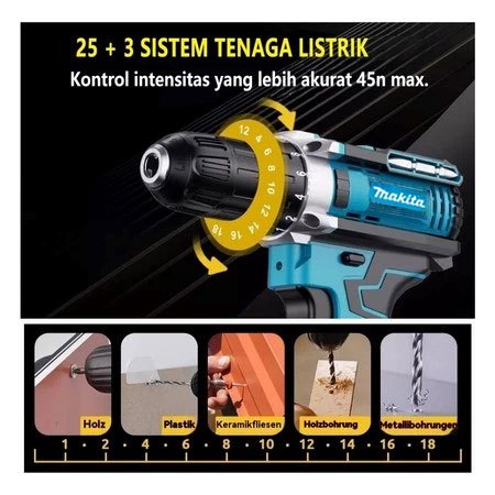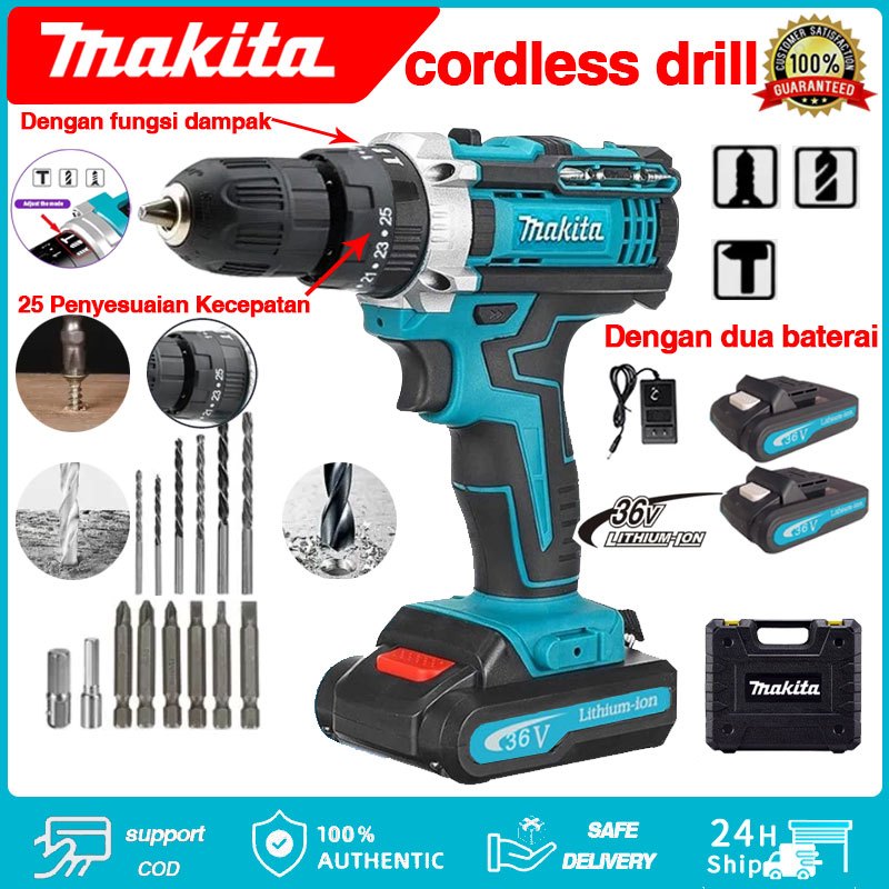 Bor listrik tanpa kabel makita hp36 dua litium baterai alat bor bor listrik alat pengeboran obeng