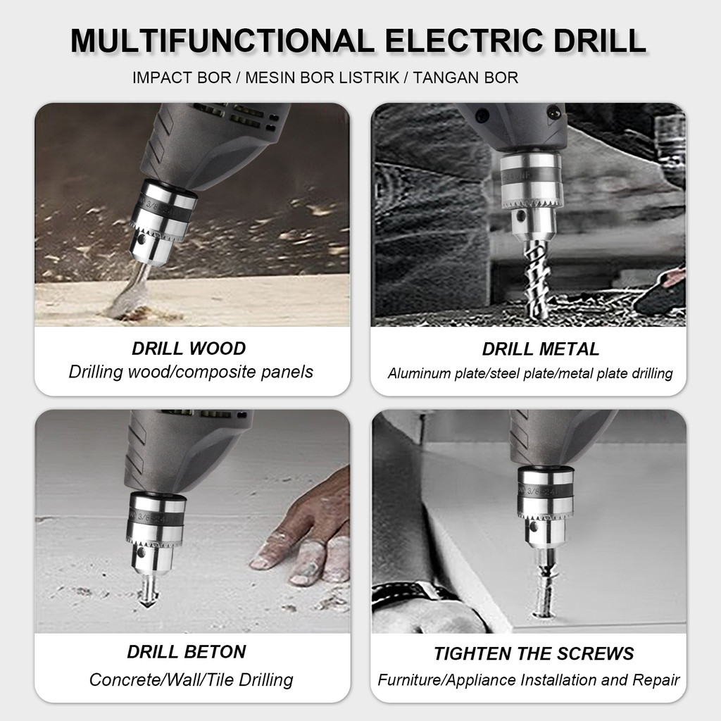 DIJUAL JLD bor listrik murah 10mm Mesin Bor Listrik 380w Mesin Bor Tangan bisa bolak balik 3200rpm Reversible Termasuk K
