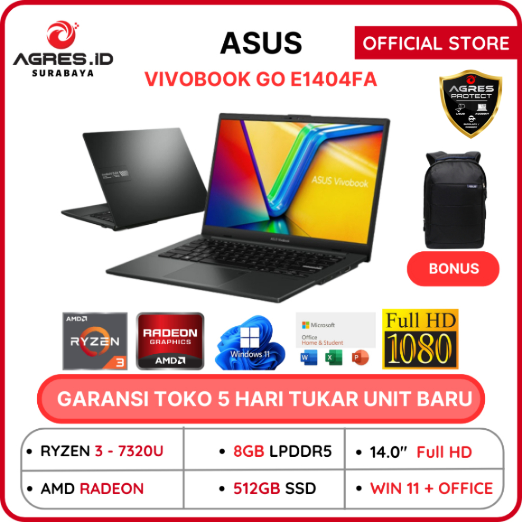 ASUS Vivobook GO 14 E1404FA Ryzen 3 7320 RAM 8GB 512GB SSD Windows 11+Office 14.0FHD