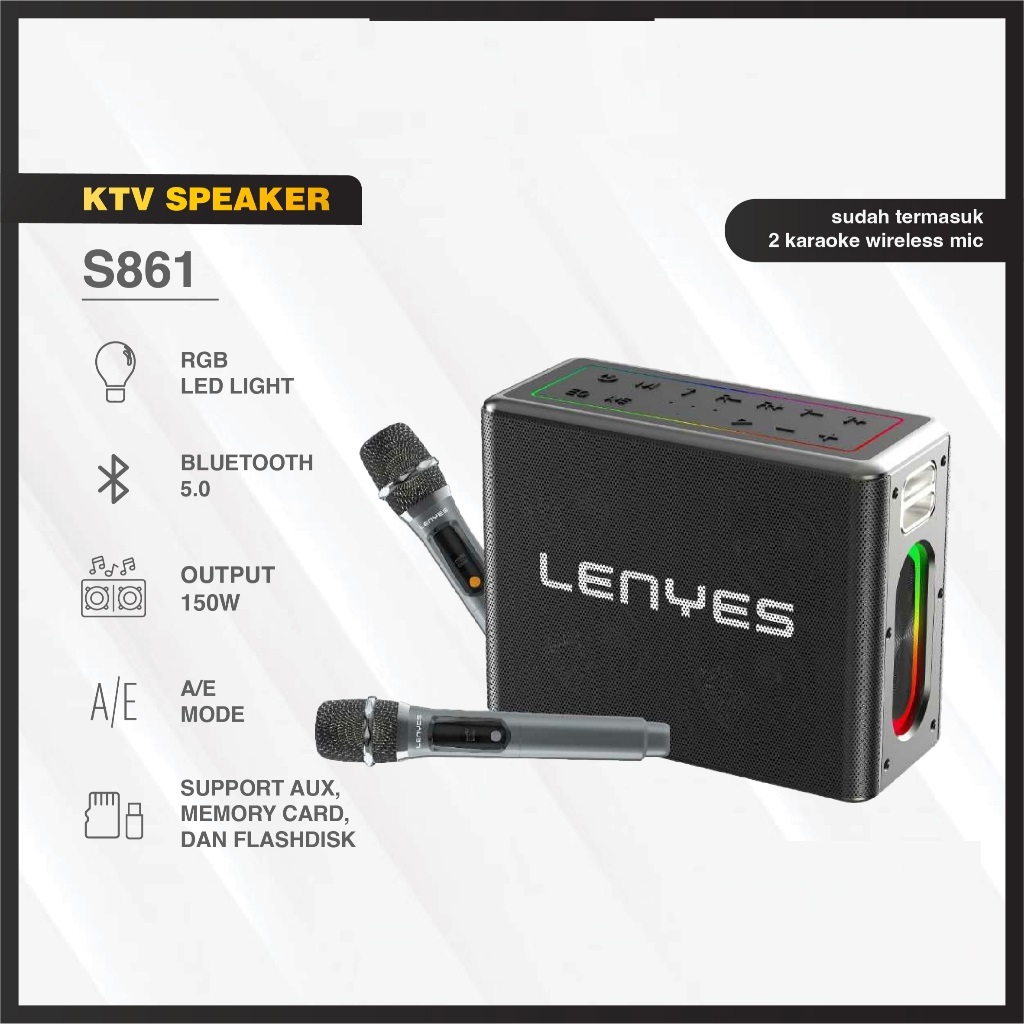 LENYES S861 150W KTV RGB LED Light Wireless Speaker + Microphone Karaoke Bluetooth 5.0 Portable High Power