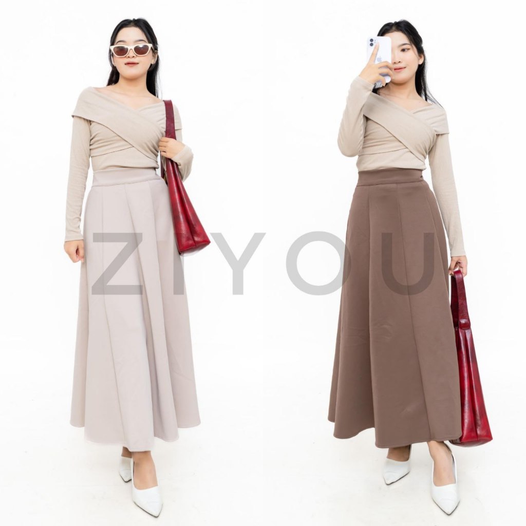 ROK WANITA MAXI LOOSE PANJANG BASIC POLOS SKIRT AUDY KOREAN STYLE