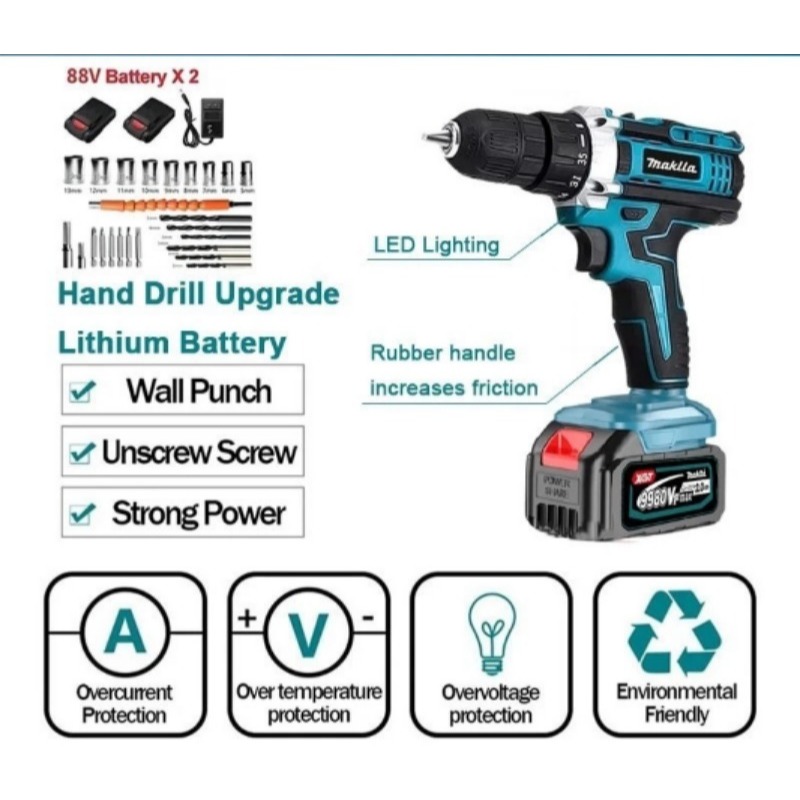 bor listrik 88vf Mesin bor 2baterai cas 10mm bor listrik murah bor tangan baterai besi tembok Beton kayu - Cordless Dril