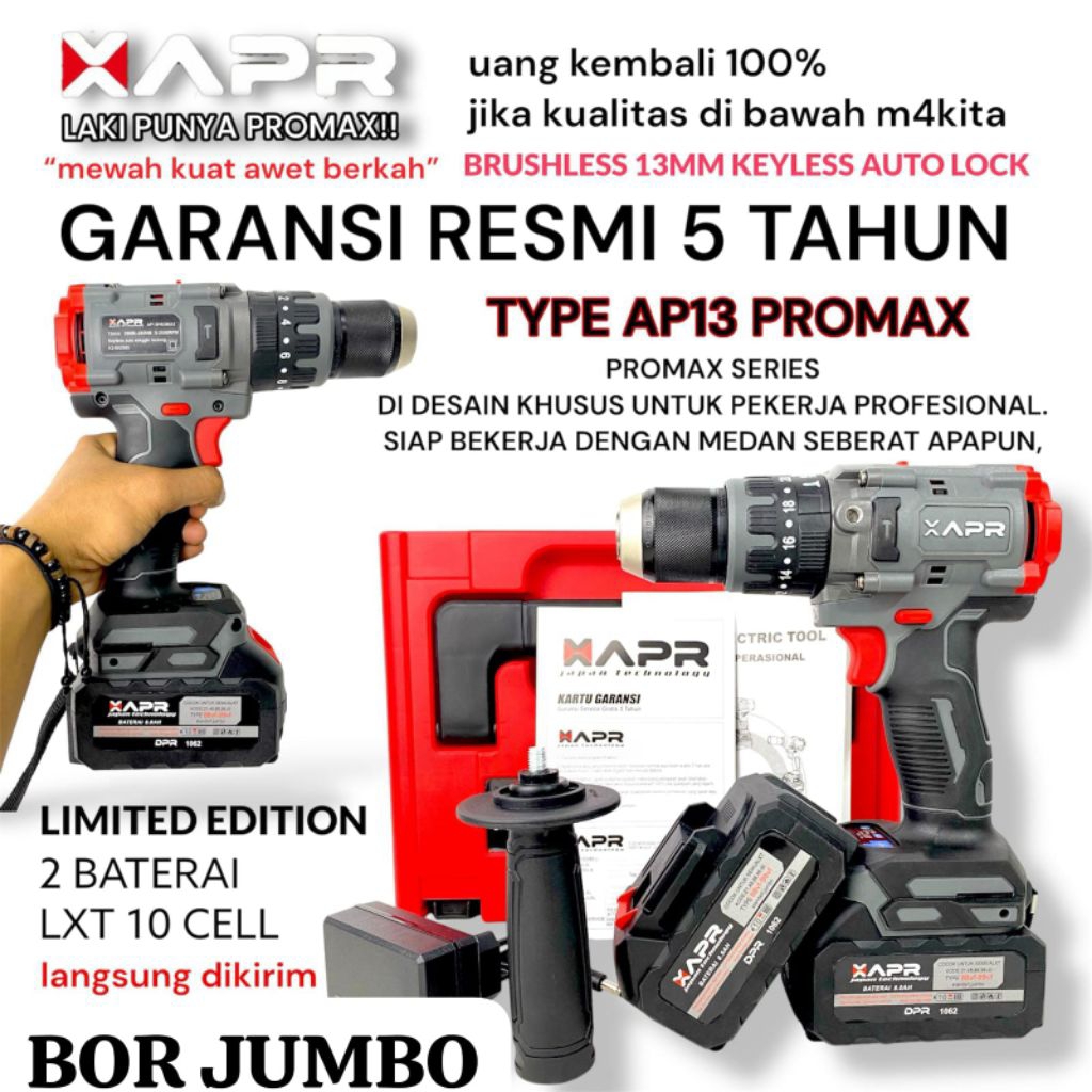 Apr raja Bor brushless 13mm jumbo impact drill cordless ap13 promax besi kayu beton sekrup semua mode bisa