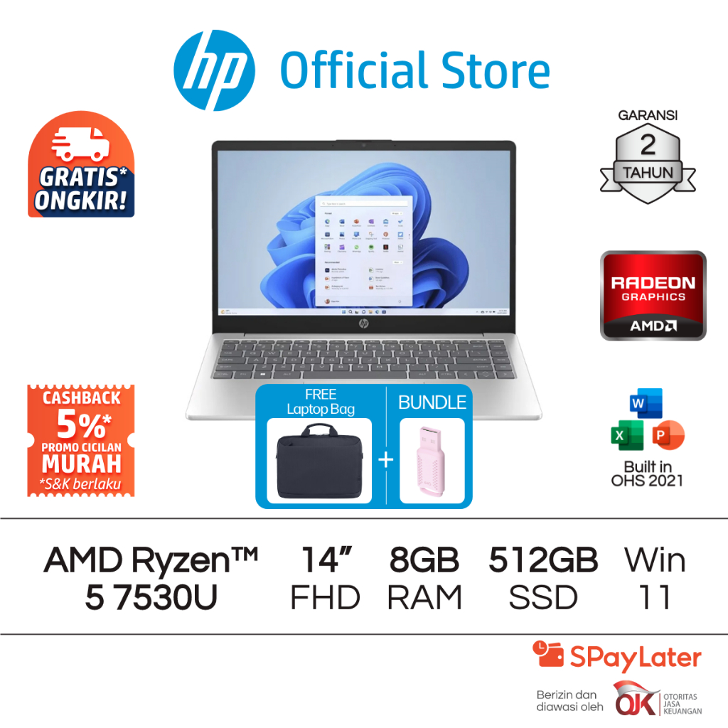 Laptop HP AMD Ryzen 5 Radeon 8GB RAM 512GB SSD Silver / Gold Windows 11 Home 14 Inch Garansi 2 Tahun Promo Murah Official Non Second