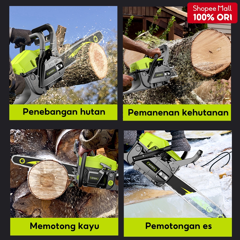 Mesin Potong Kayu Gergaji Kayu Besi 20inch Chainsaw Bensin 2Tak Gratis Ongkir