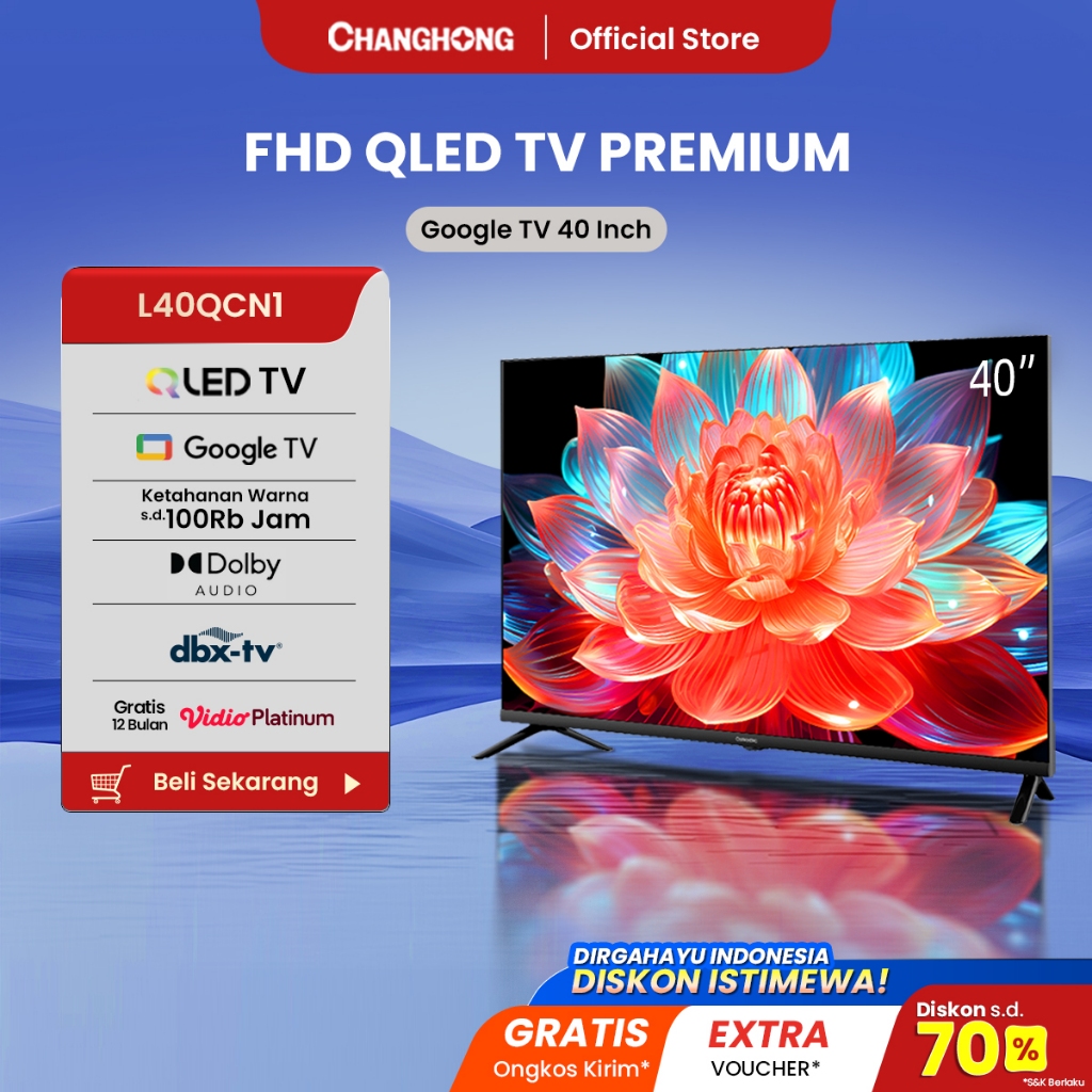 smart tv digital Changhong QLED TV 40 inch FHD Dolby Audio Google Play Netflix Youtube Bluetooth USB Google Assistant Sm