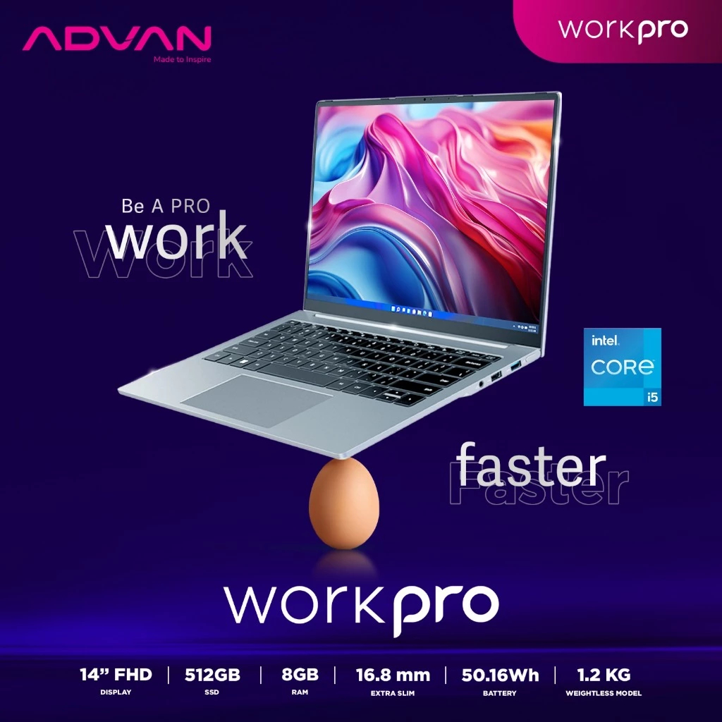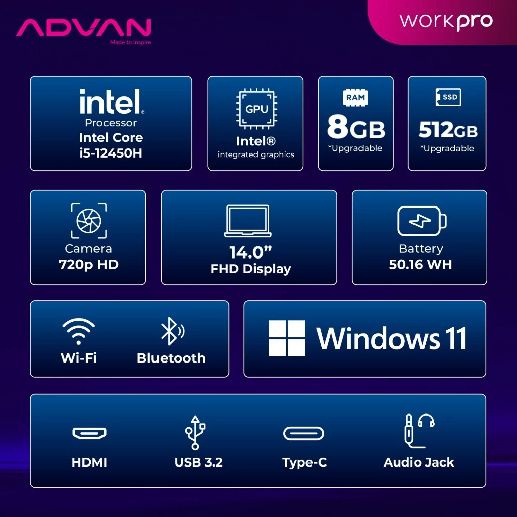 Advan WORKPRO Intel Core i5 12450H 8GB 512GB 14" FHD IPS Windows 11 Laptop Office Kerja Sekolah