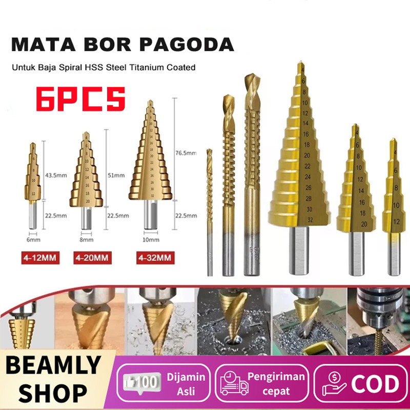 6 Pcs Mata Bor Pagoda Untuk Baja Spiral Hss Steel Titanium Coated Mata Bor Pagoda Besi Kerucut Cone Drill Hole Saw