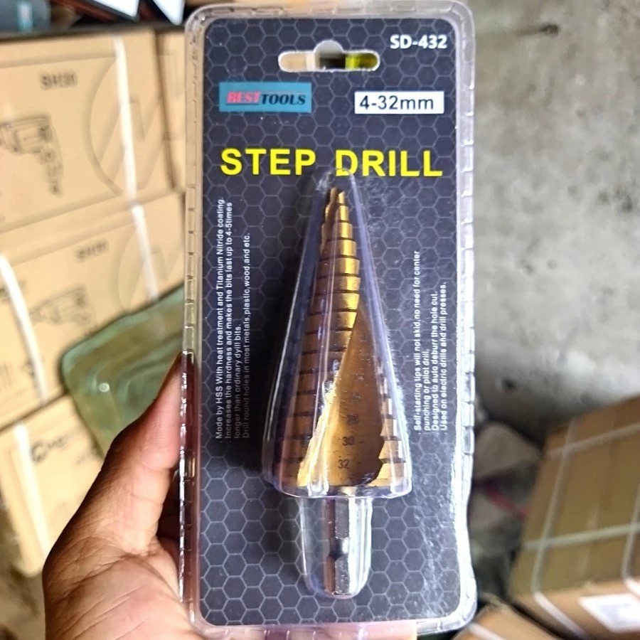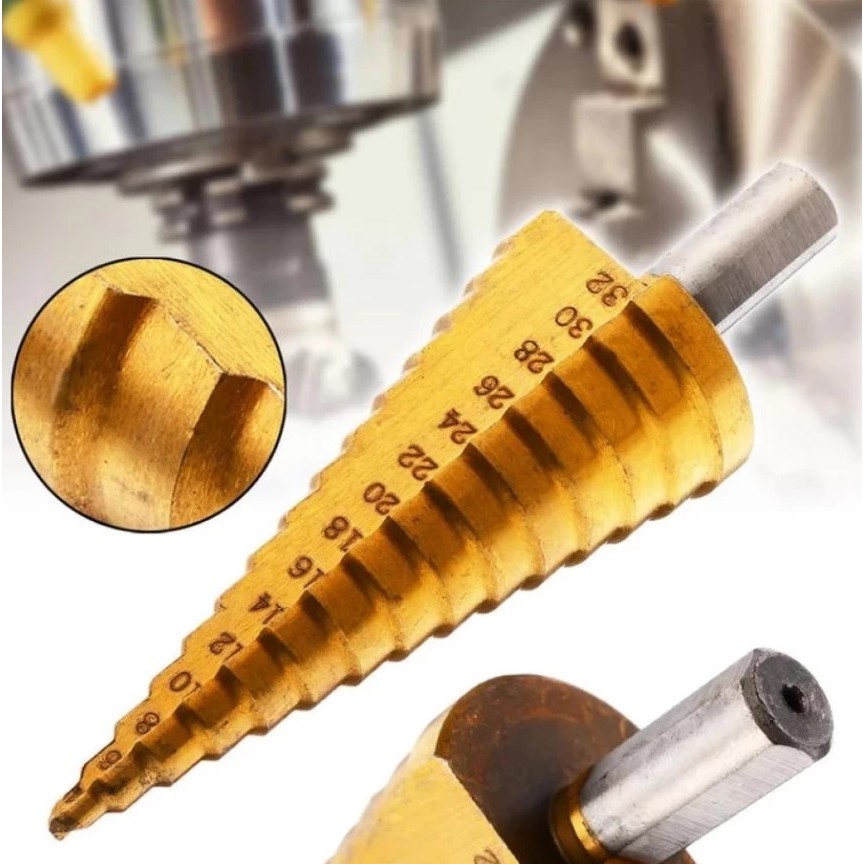 STEP DRILL MATA BOR PAGODA Kerucut Bahan HSS Lapis Titanium 4-32mm