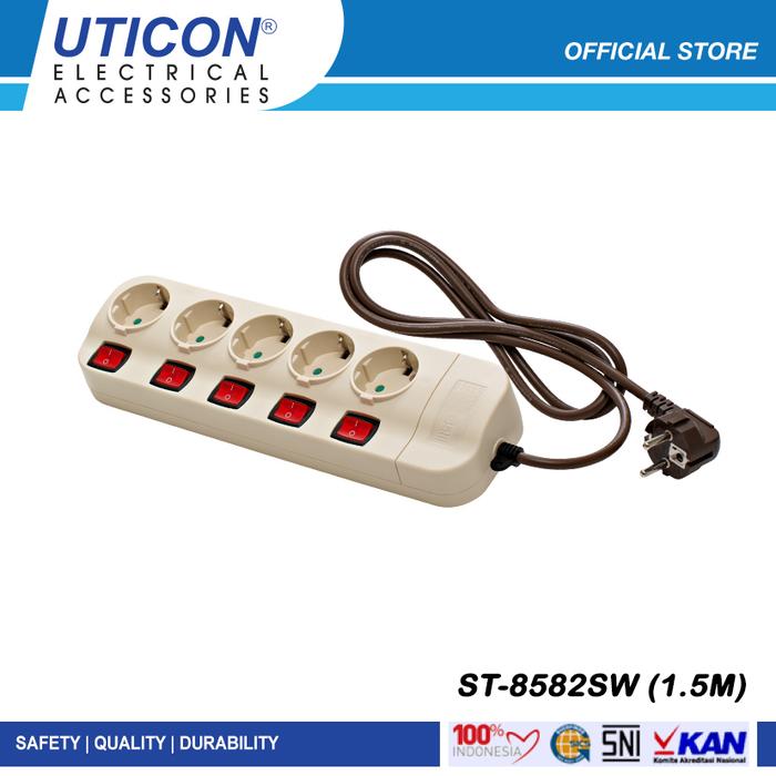 UTICON Stop Kontak 5 Lubang Stopkontak Saklar ST-8582SW (1.5M) + Panel