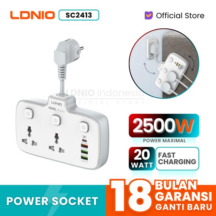 LDNIO SC2413 Power Strip Extension Stop Kontak 2 Socket + 3 USB + 1 PD