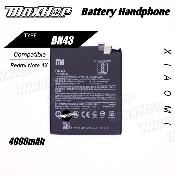 Baterai Xiaomi Redmi Note 4X / BN43 Original OEM 99 Batre BN 43 Battery Handphone Xiao Mi