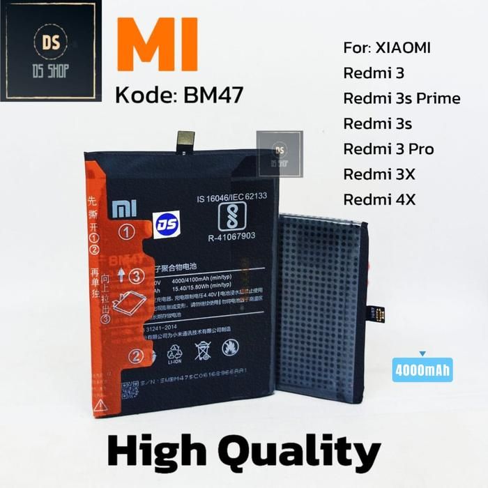 Batre HP Xiaomi Redmi 4X - 3 - 3S - 3X - 3 Pro BM47 BM 47 Ori Baterai - Oc