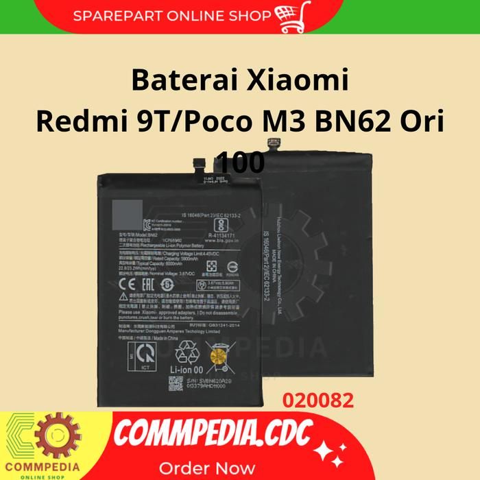 Baterai Xiaomi Redmi 9t/Poco M3 BN62 - Ori 100