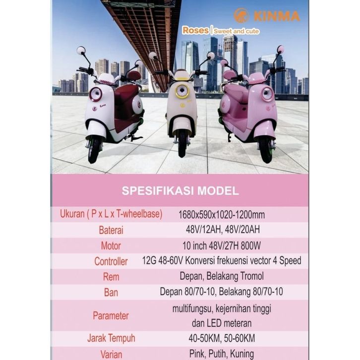 New Sepeda Listrik Kinma Rose 48V20AH 800W Terbaru