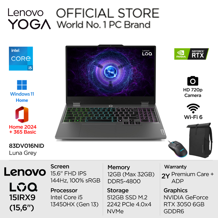 NEW 2025 - LENOVO LOQ 15 15IRX9 I5 13450HX RTX3050 6GB/ 24GB 512GB W11+OHS+M365B 15.6FHD 144HZ 100SRGB 4ZRGB-6NID
