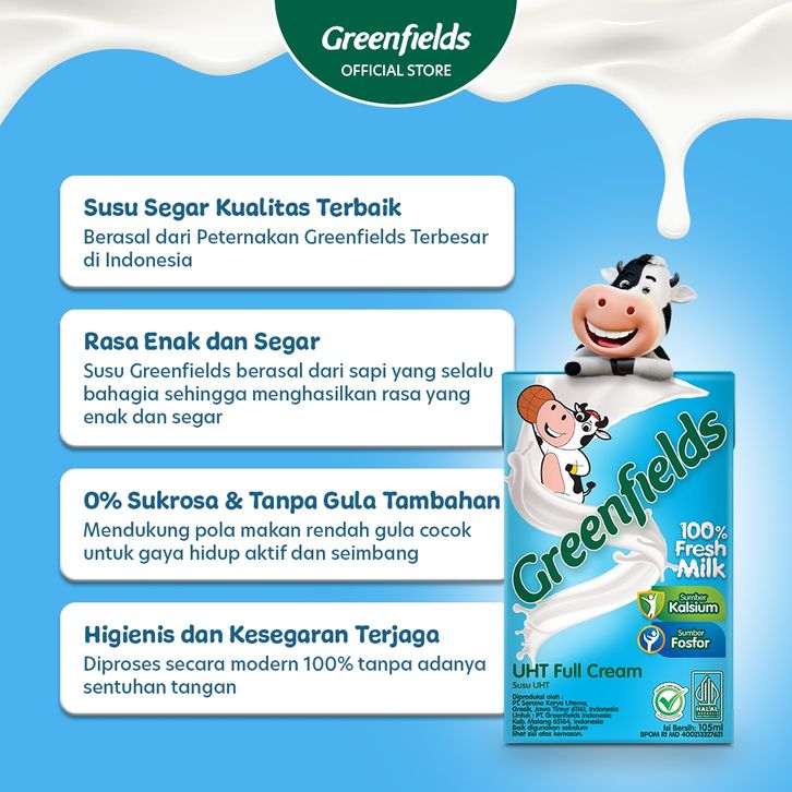 [Star] 1 DUS Susu Greenfields UHT Full Cream 105 mL x 1 Karton [LEBIH HEMAT]