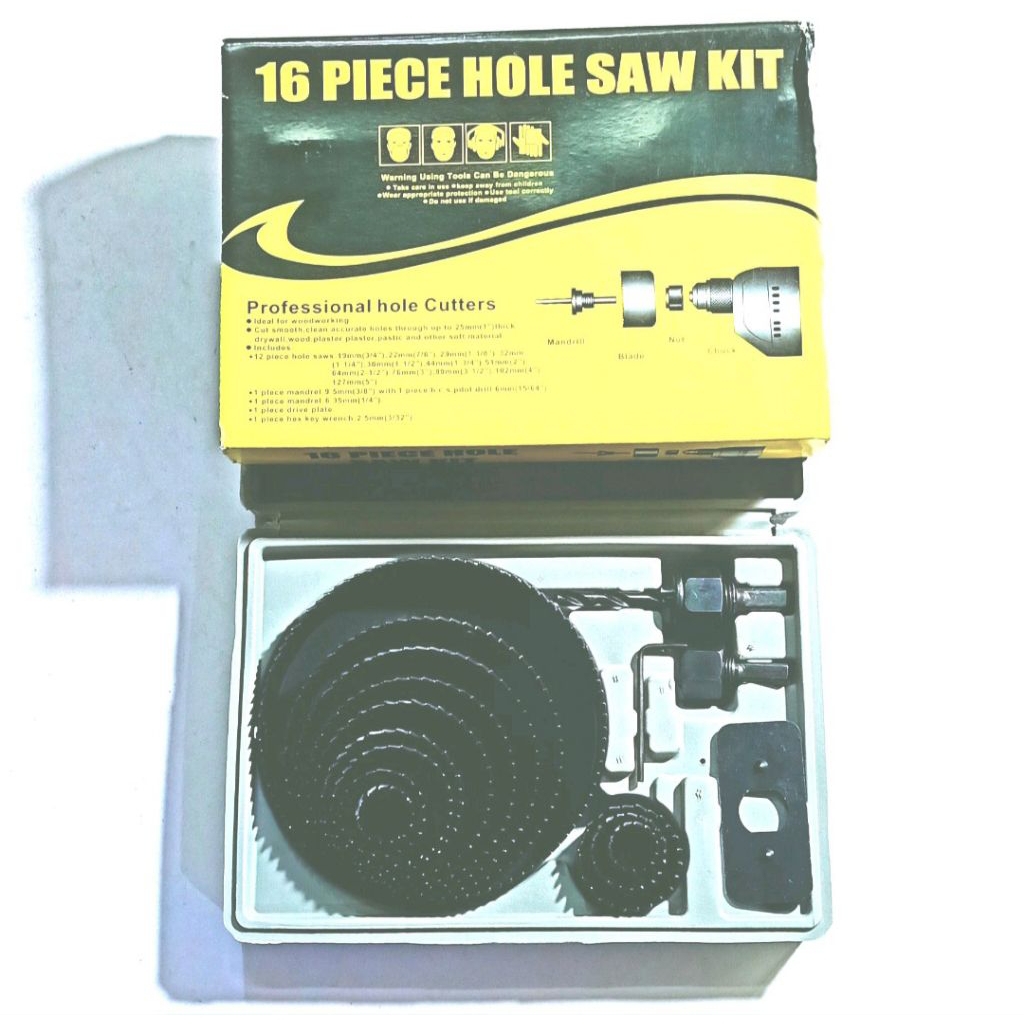Mata Bor Hole Saw Set 11-13-16 Pcs Mata Bor Pelubang Kayu Pvc Hole saw Kit.