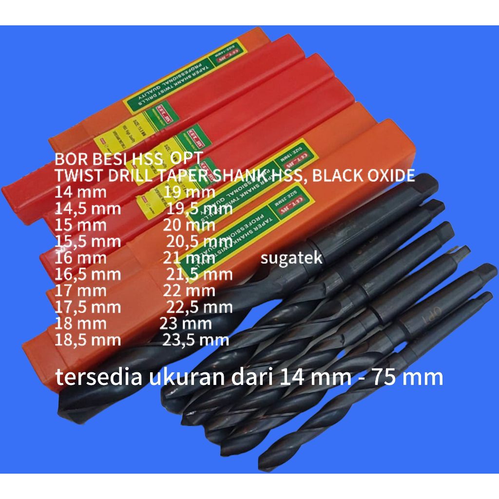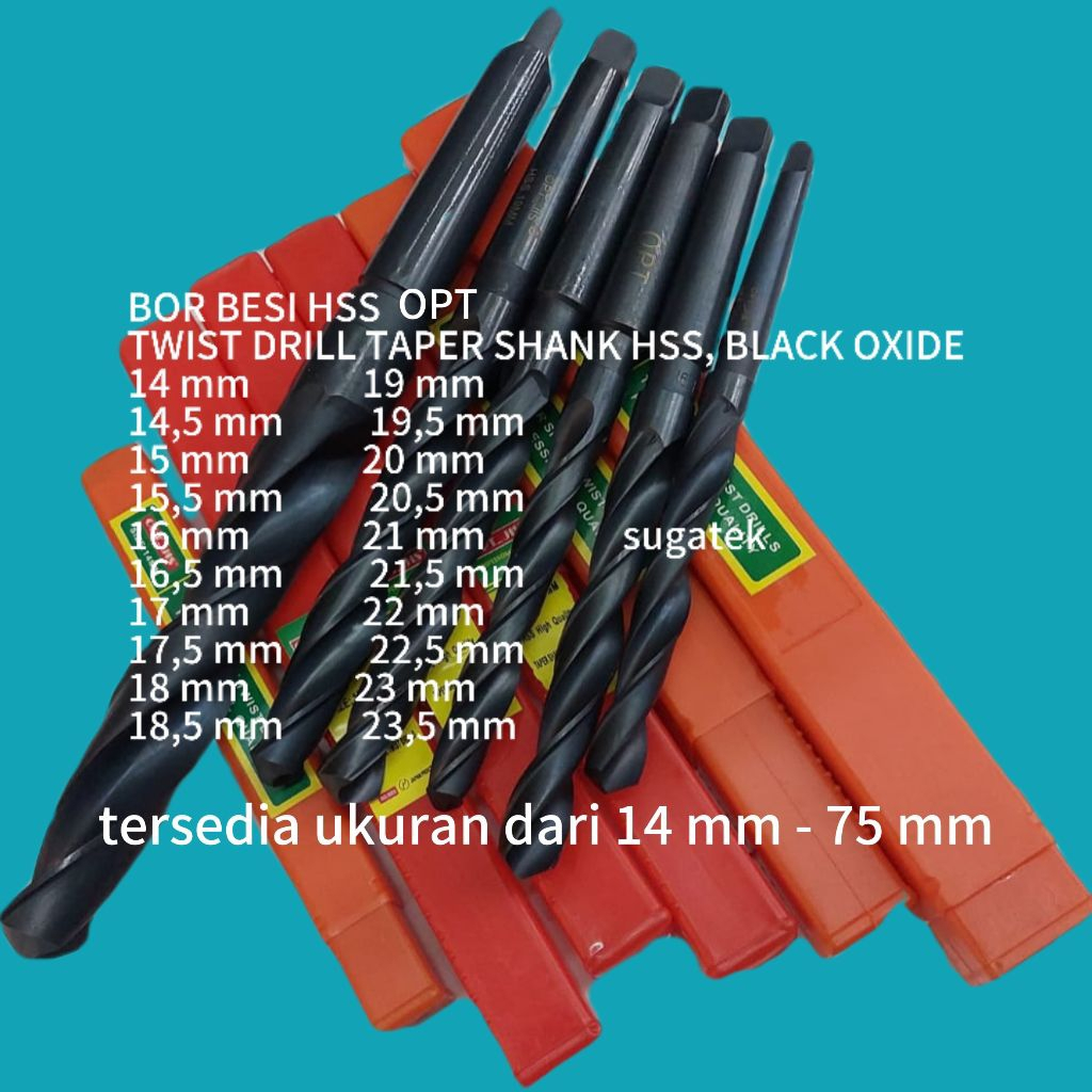 Mata Bor Besi HSS OPT_JIS TAIWAN TAPER SHANK TWIST DRILLS HSS BLACK OXIDE
