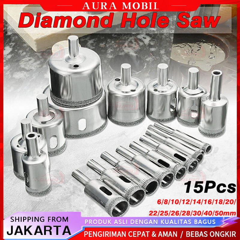 Mata Bor Diamond 15 PCS 6-50mm Set Pelubang Kaca Keramik Granit Coated Anti Karat Hole Saw Drill Bit