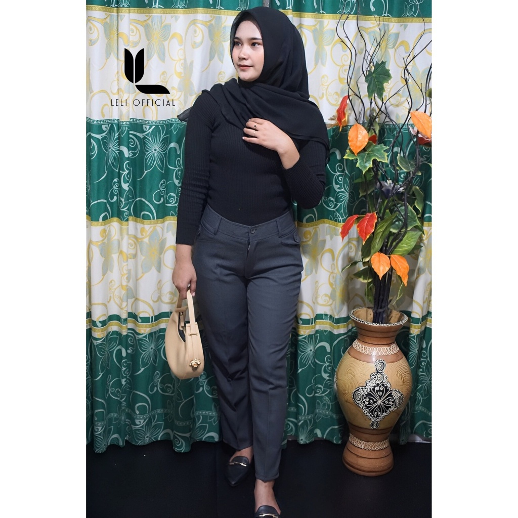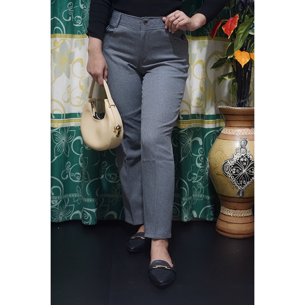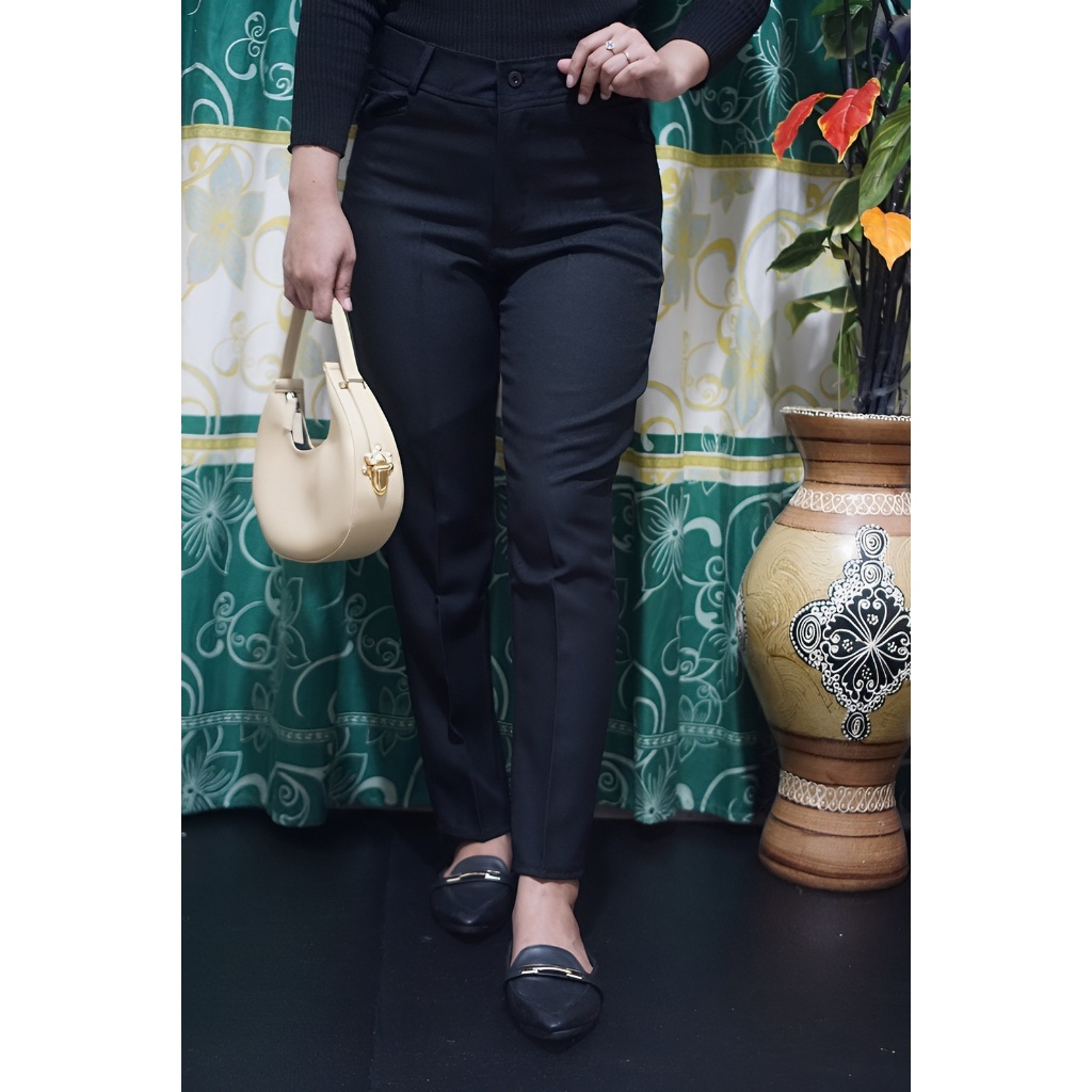 Celana Bahan Wanita - Celana Panjang Kerja Kantor Anti Kusut Slimfit Resleting Wol Premium Dewasa